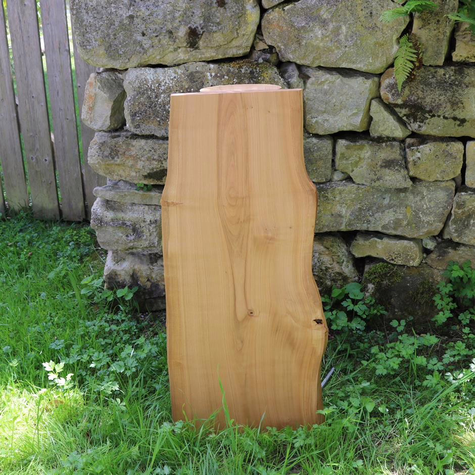 Natürlich gestaltete Stele mit Waldkanten aus Massivholz.