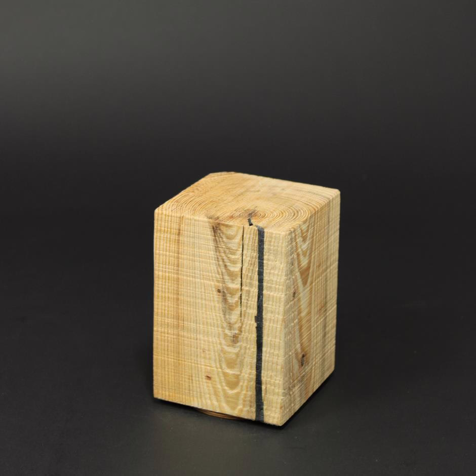 Puristisch und ursprünglich gestaltete Holzurne in Quaderform mit 1-2 Waldkanten und sägerauer Oberfläche.